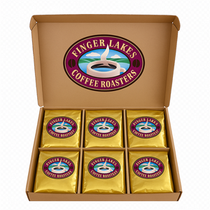 The perfect gift for the coffee lover in your life! Our best-selling holiday and everyday flavors are now available in 12 convenient 1.5 oz portion packs—just right for brewing the perfect pot of coffee at home. The ideal gift for the coffee enthusiast or Finger Lakes Coffee fan in your life!